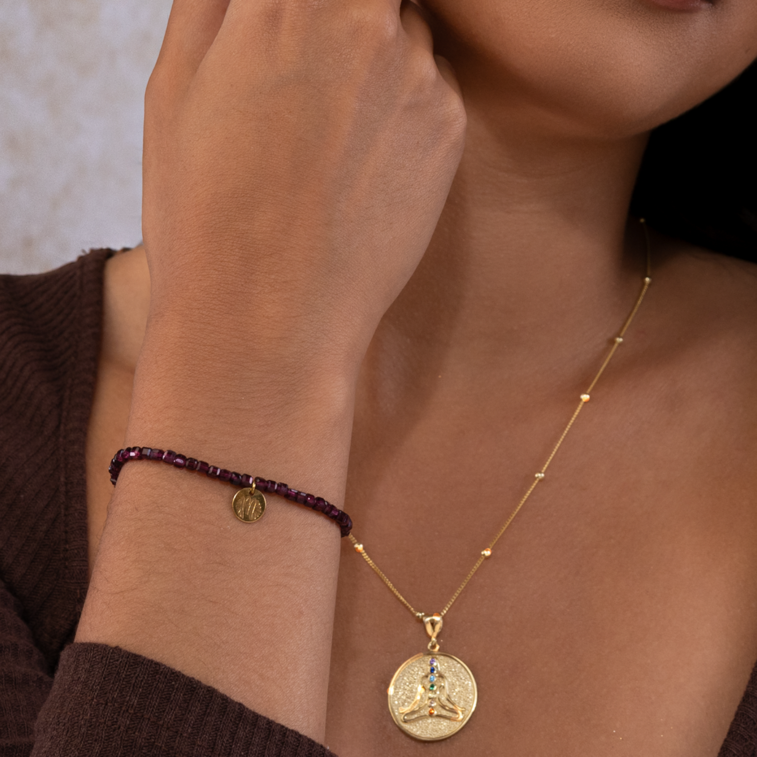 Ékszer anyaga: 3 mm gránát kövek - 18K arannyal bevont 925 sterling ezüst logó - rugalmas ékszerdamil