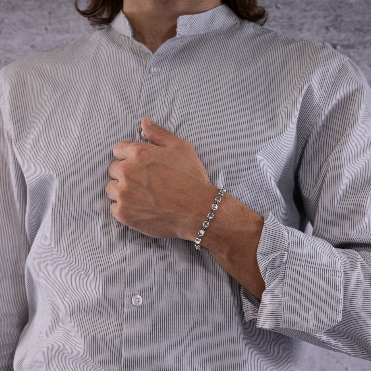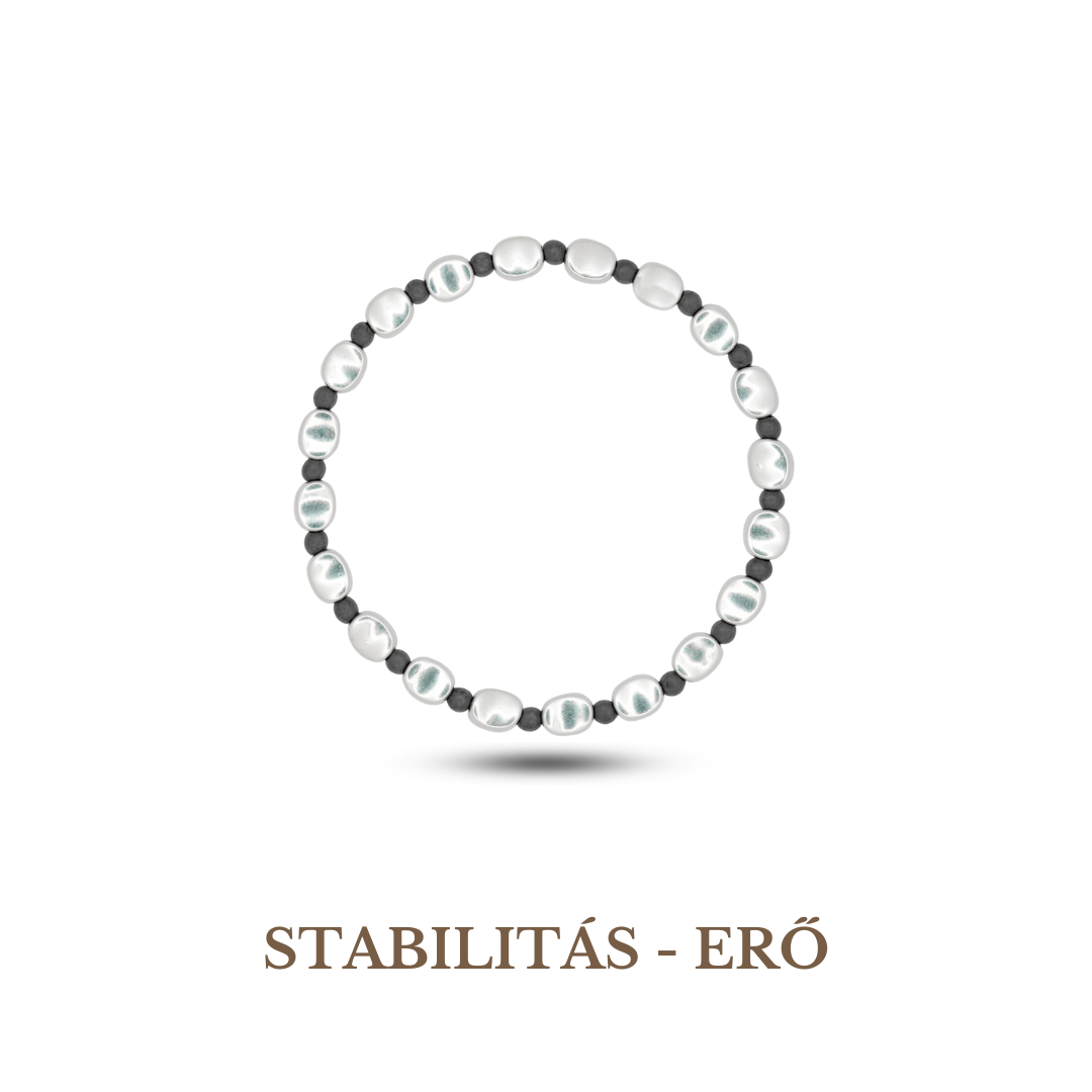 Termék anyaga: 2 mm hematit és ezüst színű kövek - rugalmas ékszerdamil
