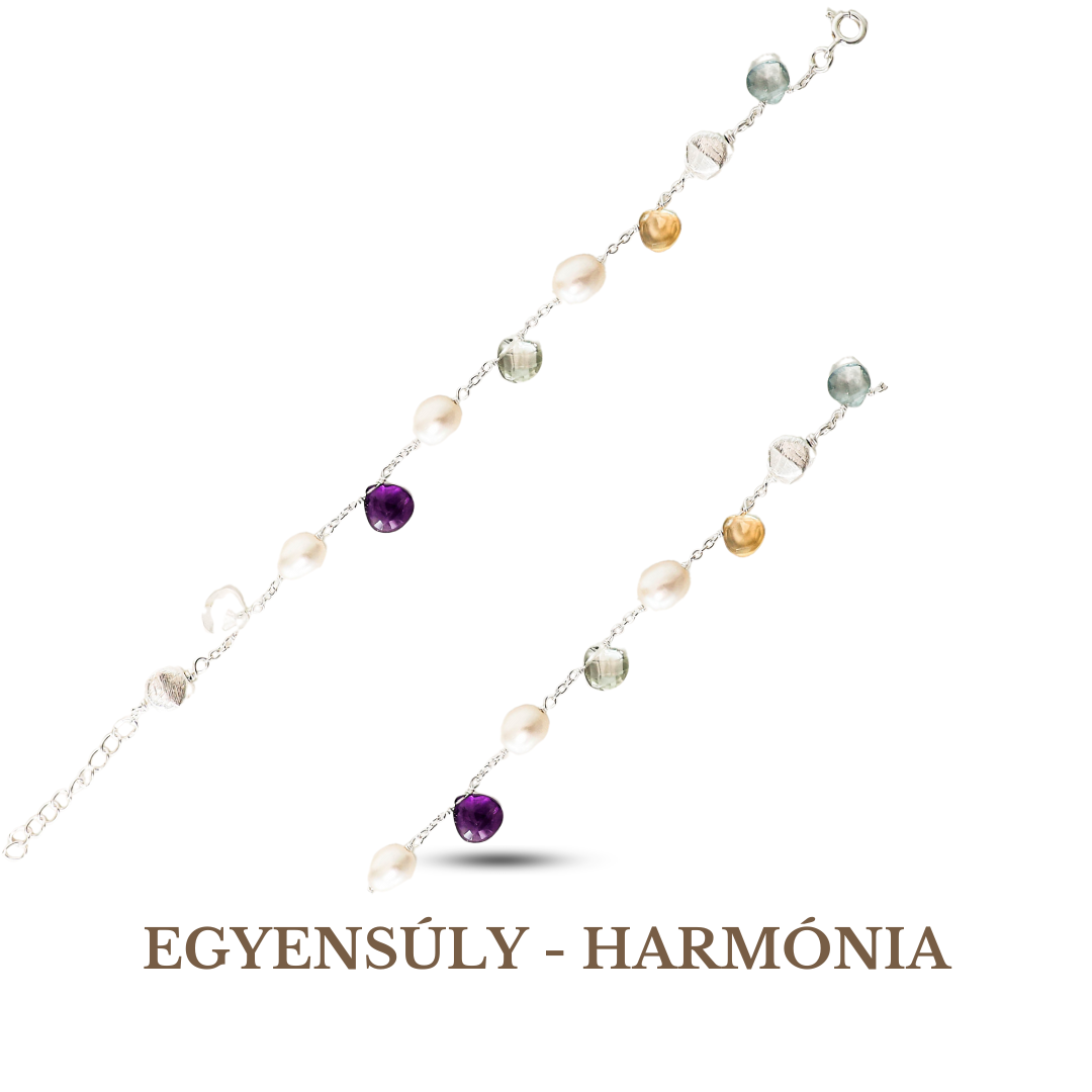 Ékszer anyaga: 925 sterling ezüst, ametiszt, kék topáz, citrin, zöld ametiszt, gyöngy