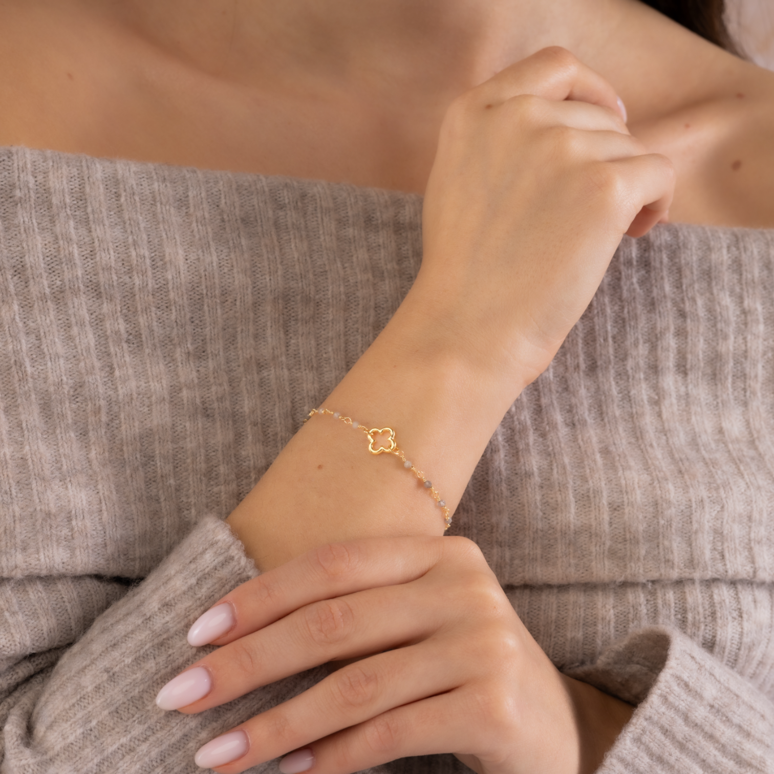 Négylevelű Lóhere Szimbólum Labradorit Karkötő
