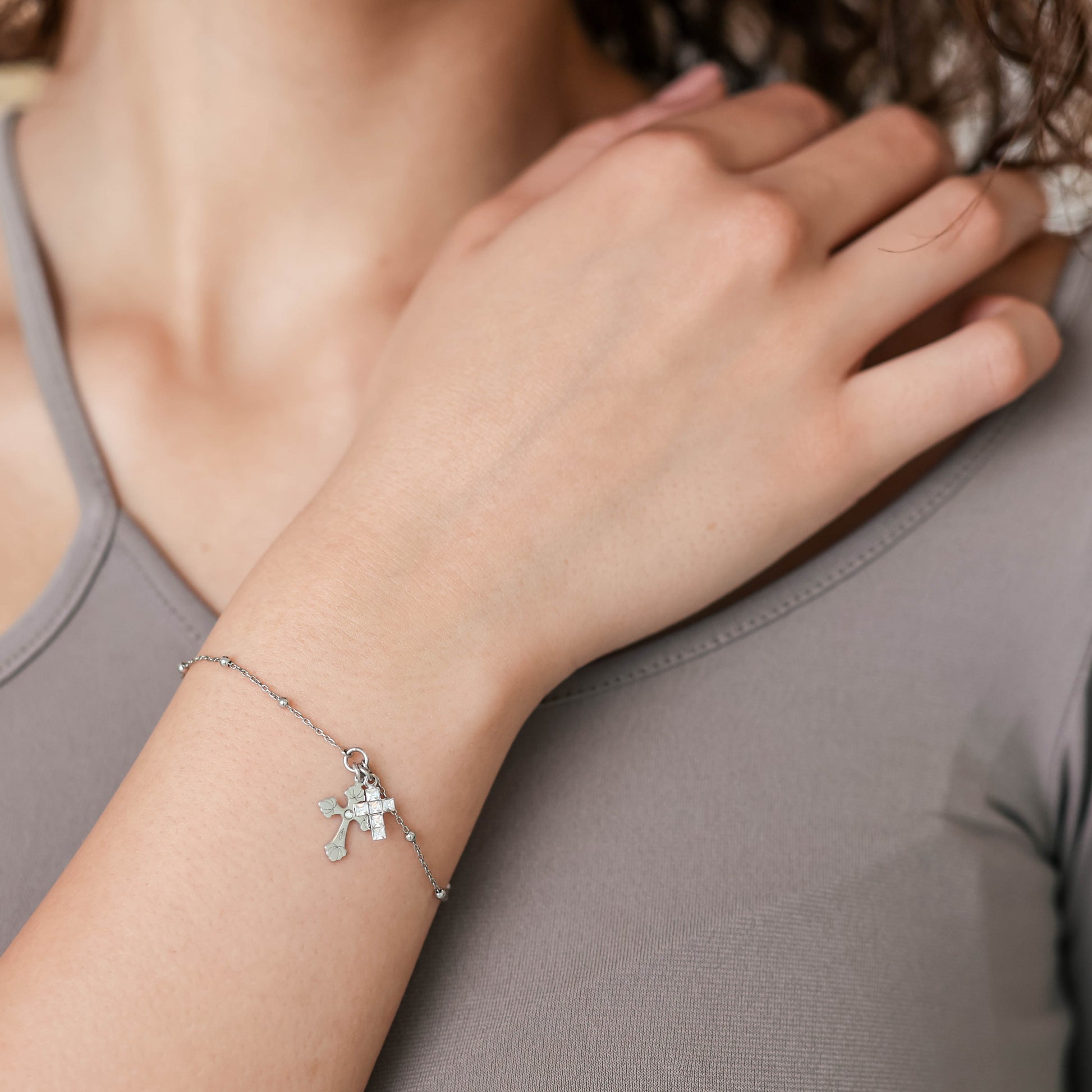 Dupla Kereszt Szimbólum Karkötő Ezüst