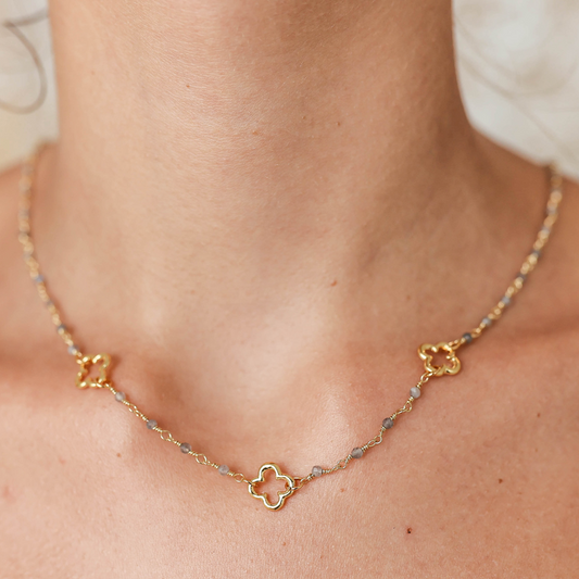 Négylevelű Lóhere Szimbólum, Labradorit Nyaklánc