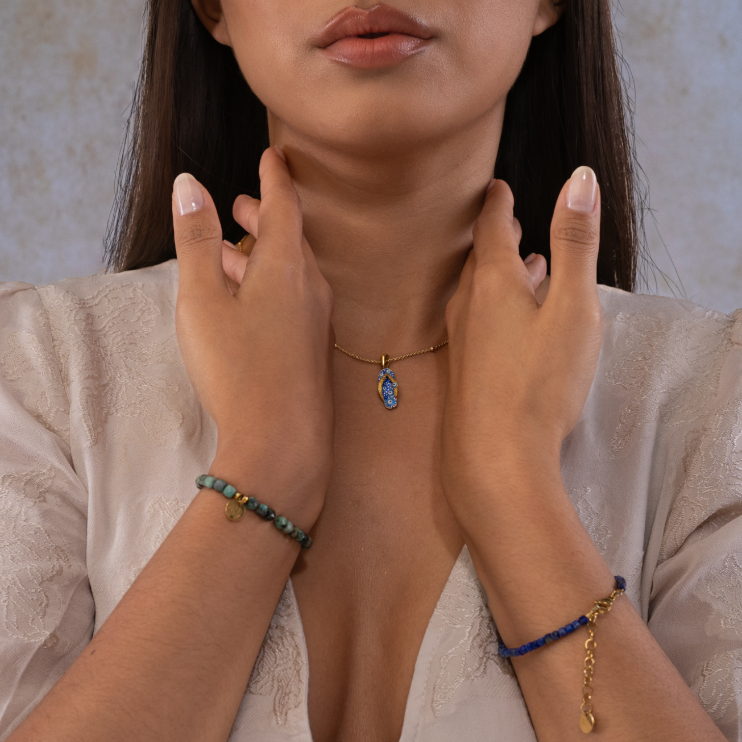 Ékszer anyaga: 3 mm lapis lazuli ásványkövek - lánc - 18K arannyal bevont 925 sterling ezüst logó
