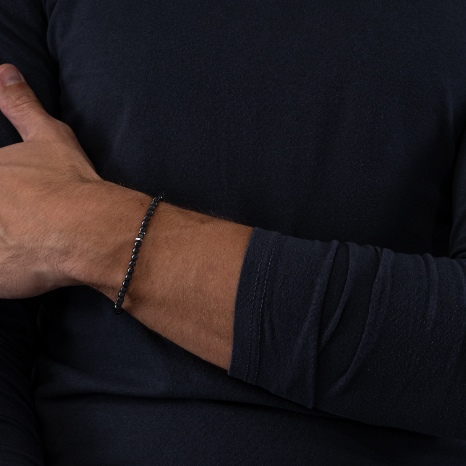 Ékszer tulajdonságai: 4 mm hematit és smaragd kövek - 925 sterling ezüst logó - rugalmas ékszerdamil
