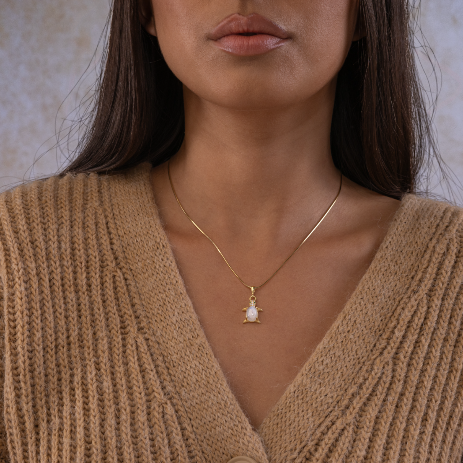 A teknős lassú és egyenletes tempójával a hosszú élet, a stabilitás és a védelem szimbóluma különböző kultúrákban, gyakran azért viselik, hogy pozitív energiát és jó szerencsét vonzzon.