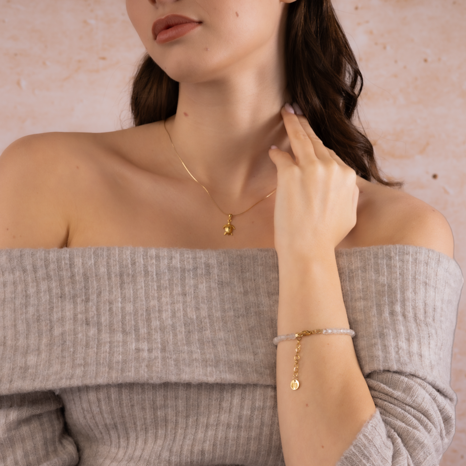 A teknős lassú és egyenletes tempójával a hosszú élet, a stabilitás és a védelem szimbóluma különböző kultúrákban, gyakran azért viselik, hogy pozitív energiát és jó szerencsét vonzzon.