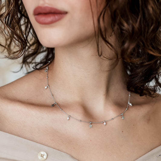 Csillag Szimbólum, Gyöngy Nyaklánc Ezüst