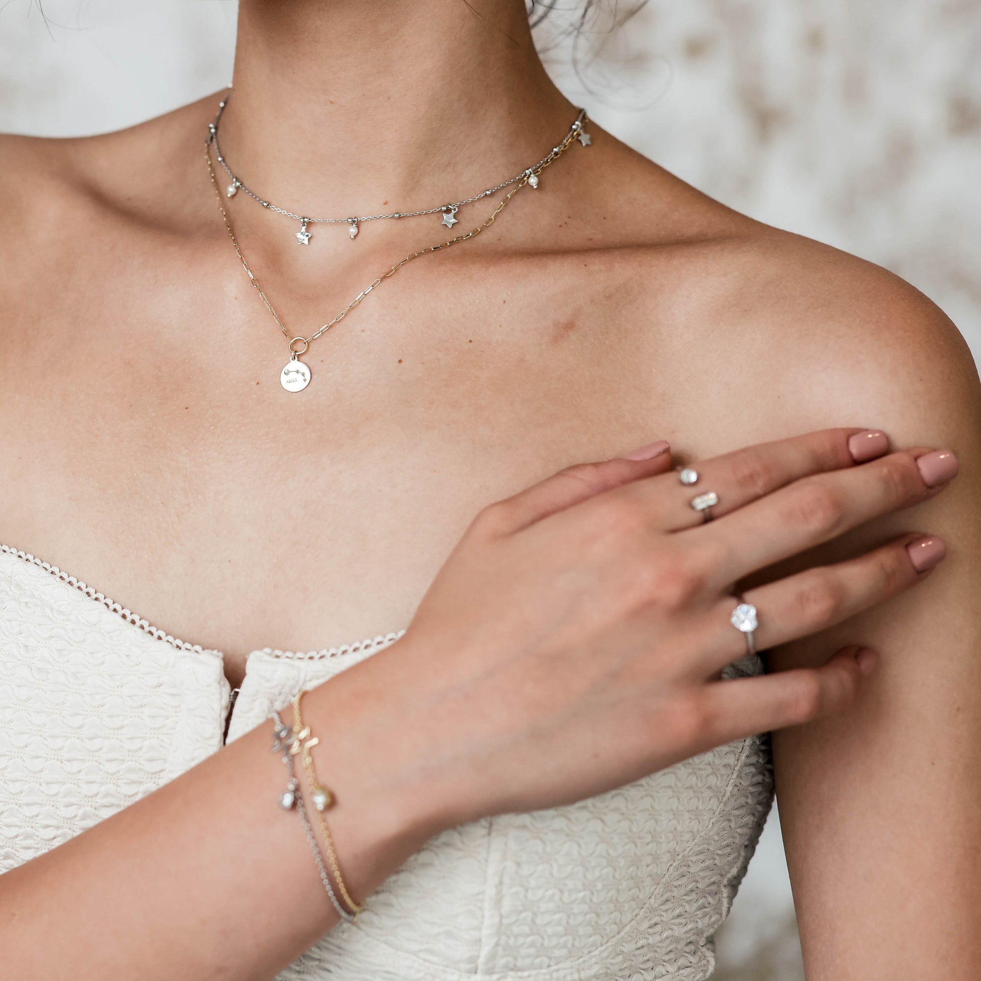 A csillag az útmutatás és az égi védelem jelképe. Viselése emlékeztet arra, hogy soha nem vagy egyedül, hiszen az univerzum mindig vigyáz rád és utat mutat a sötétségben. A csillag ragyogása reményt és bátorságot ad, hogy bátran haladj előre az élet útján.
