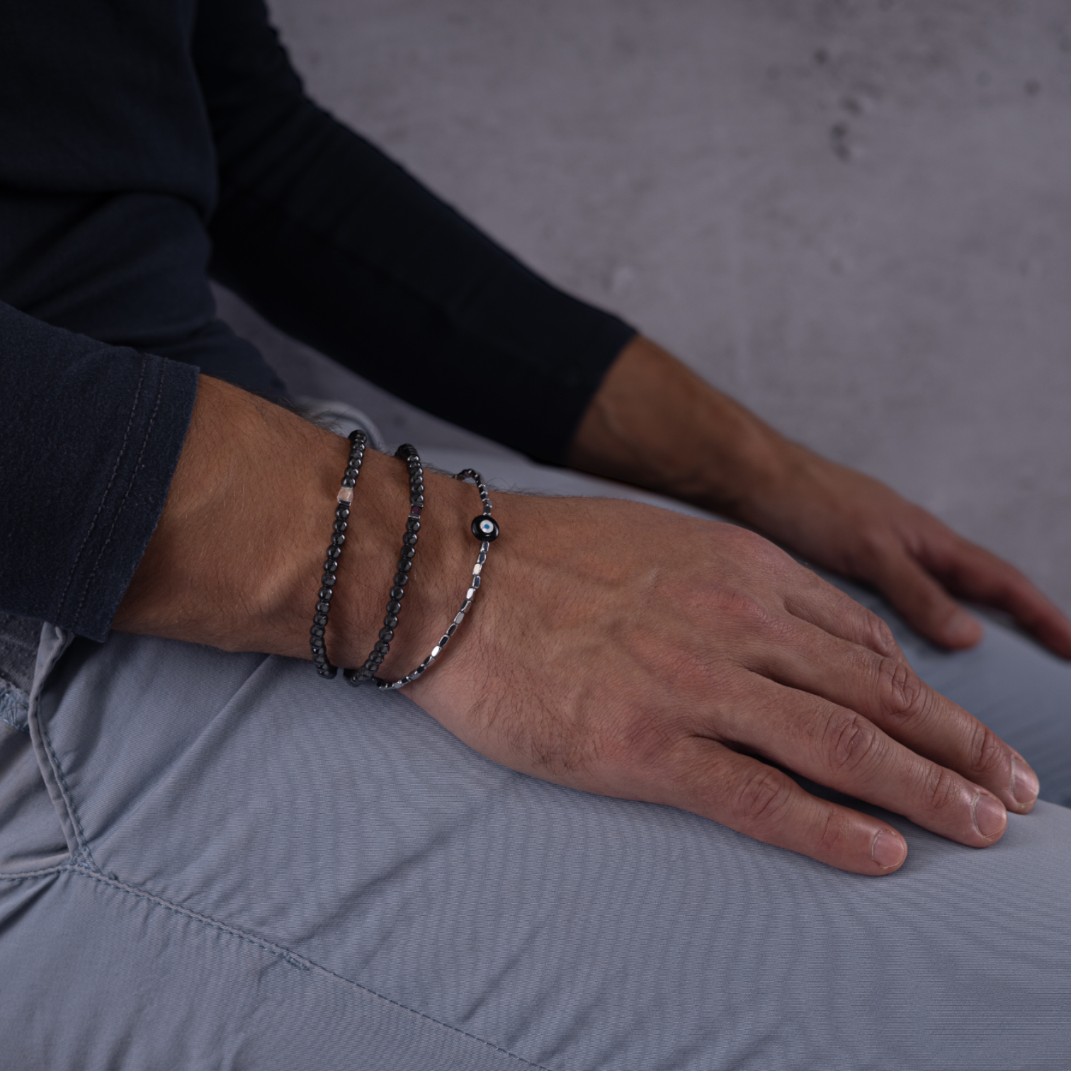 Ékszer anyaga: 2 mm hematit kövek - rugalmas ékszerdamil