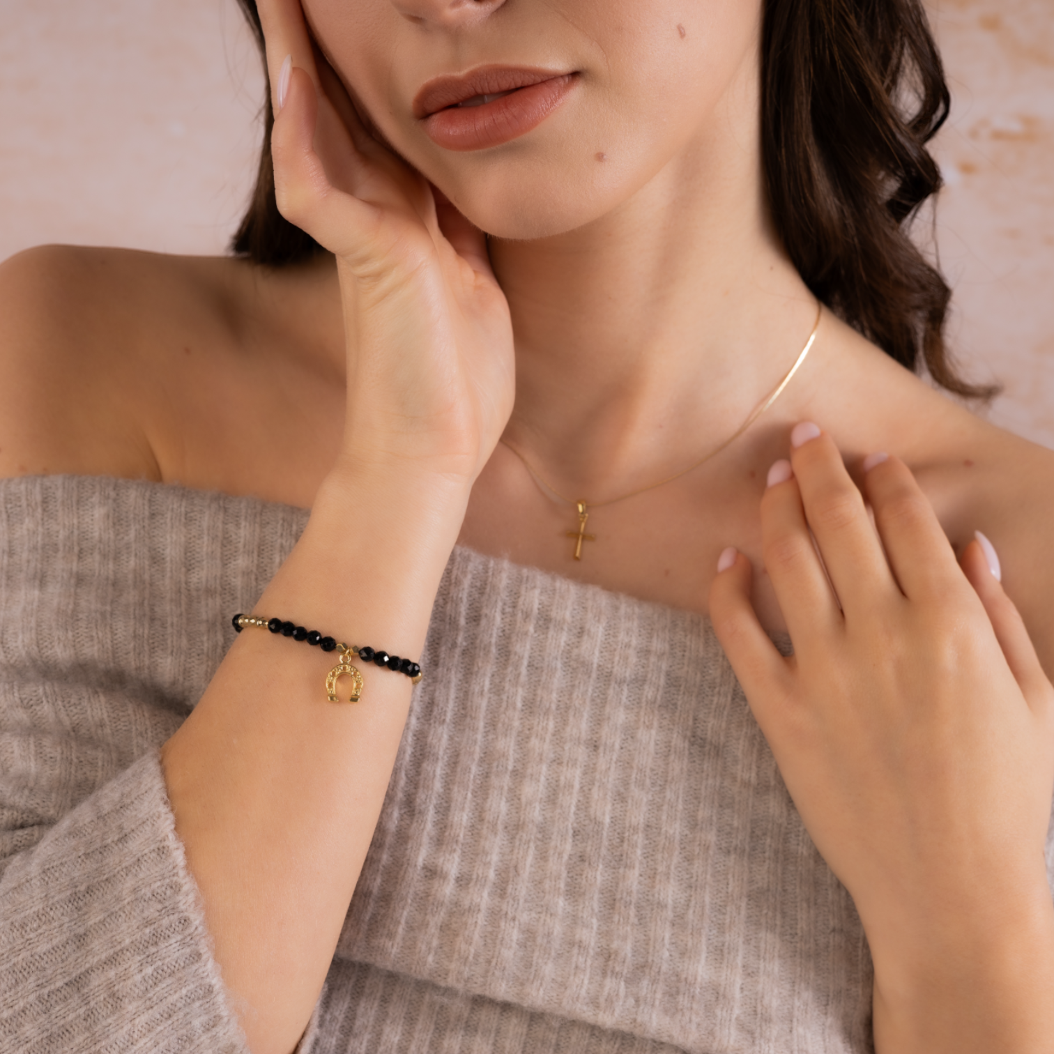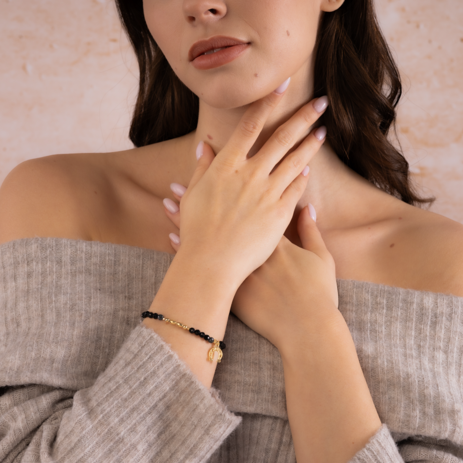Horseshoe Symbol Black Tourmaline Bracelet (15 cm)