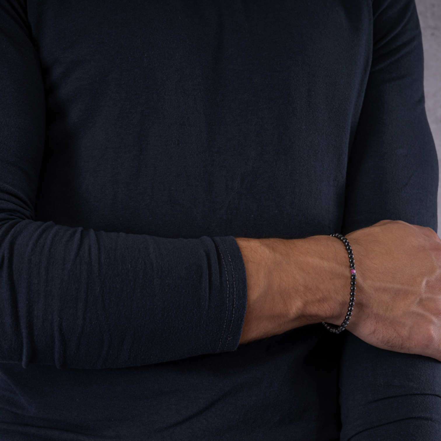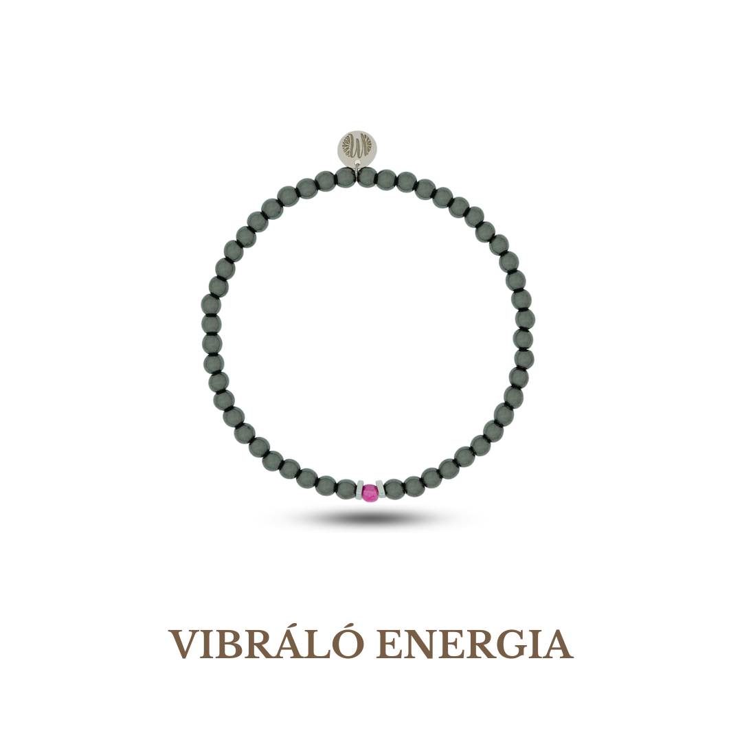 Ékszer tulajdonságai: 4 mm-es hematit és rubin kövek - 925 sterling ezüst logóval - rugalmas ékszerdamil